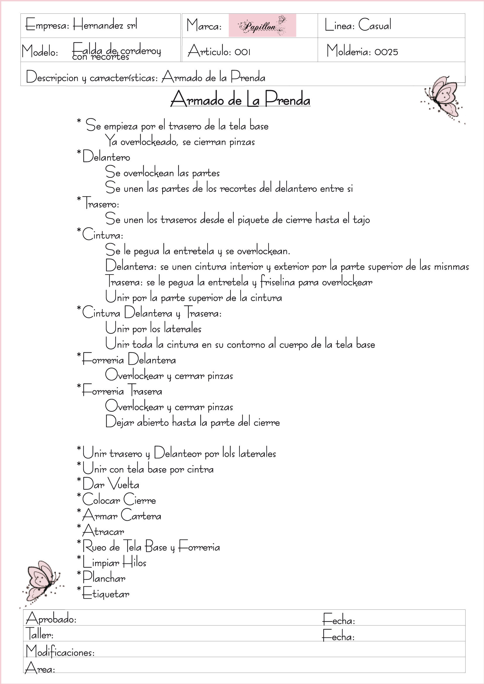 La realización de una ficha técnica es primordial para la concreción de prototipos, muestras, modelos, y producciones enteras para la industria de la moda.