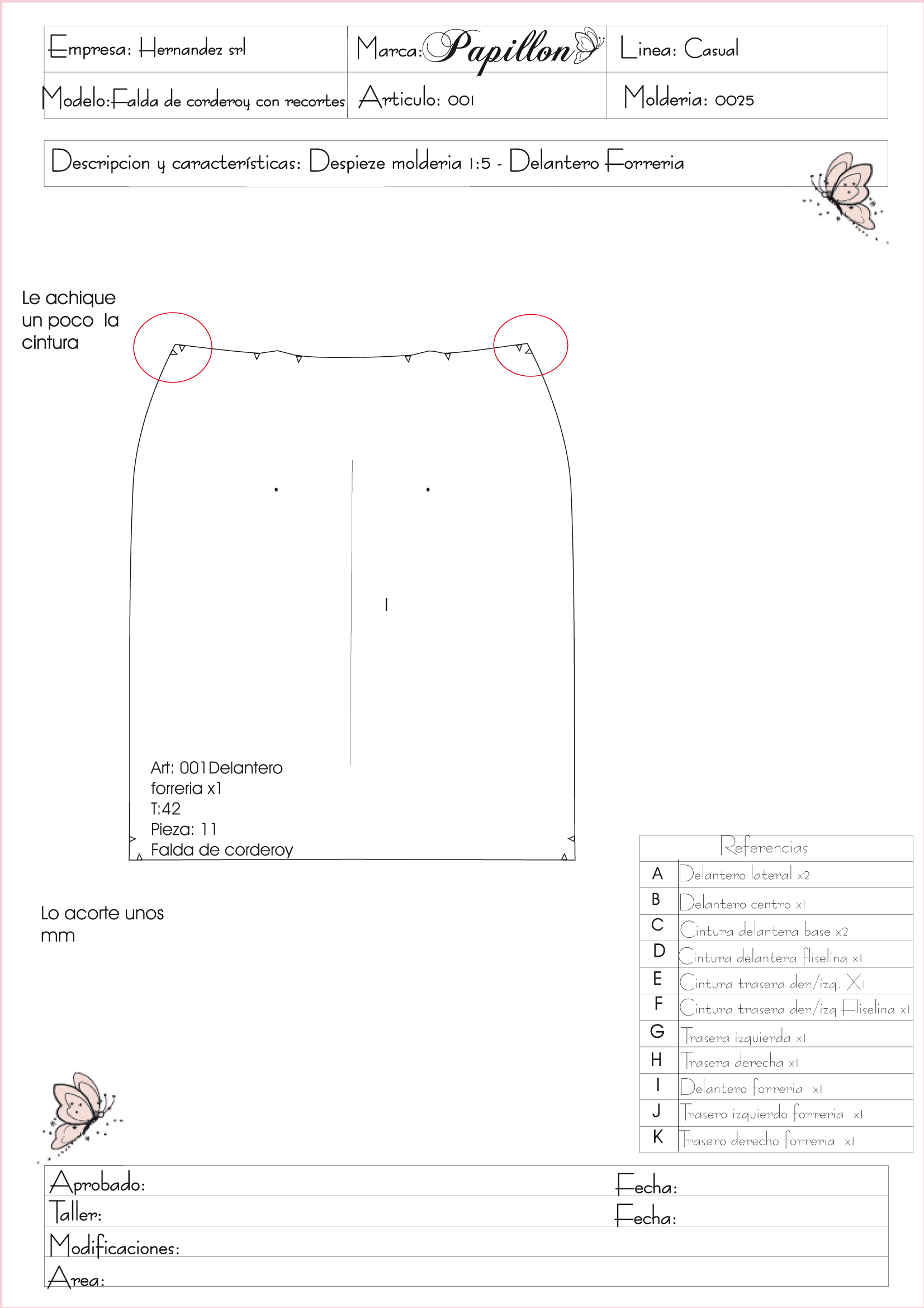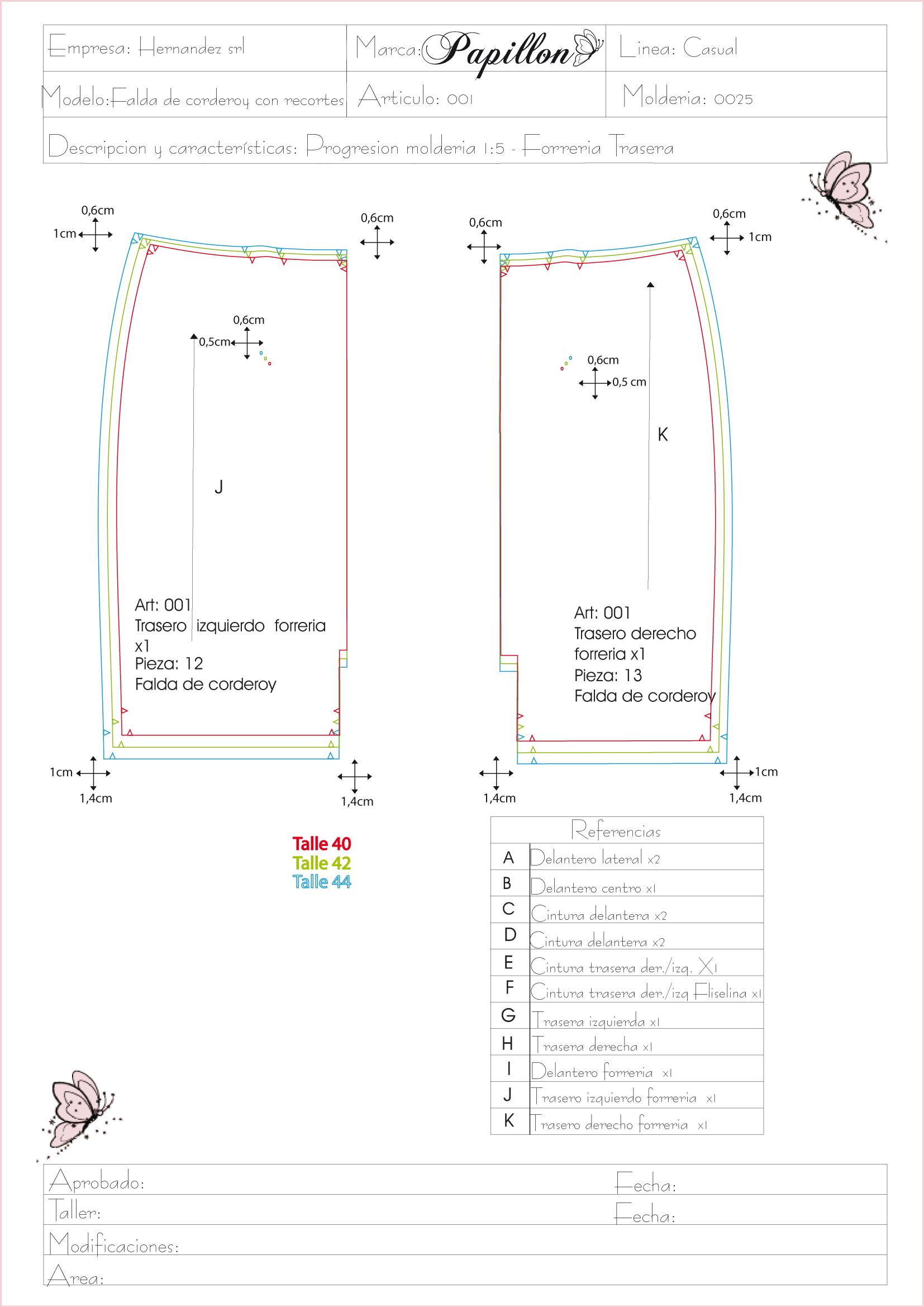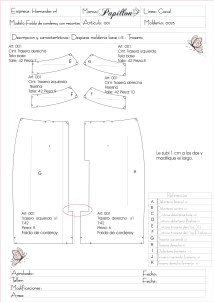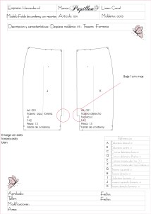 Por ultimo, cuando se trabaja con muestras y contramuestras, a veces se continúan haciendo modificaciones, pero para abaratar los costos no se vuelven a hacer las fichas si no que se hace una ultima con las correcciones o modificaciones que aclaran los detalles.