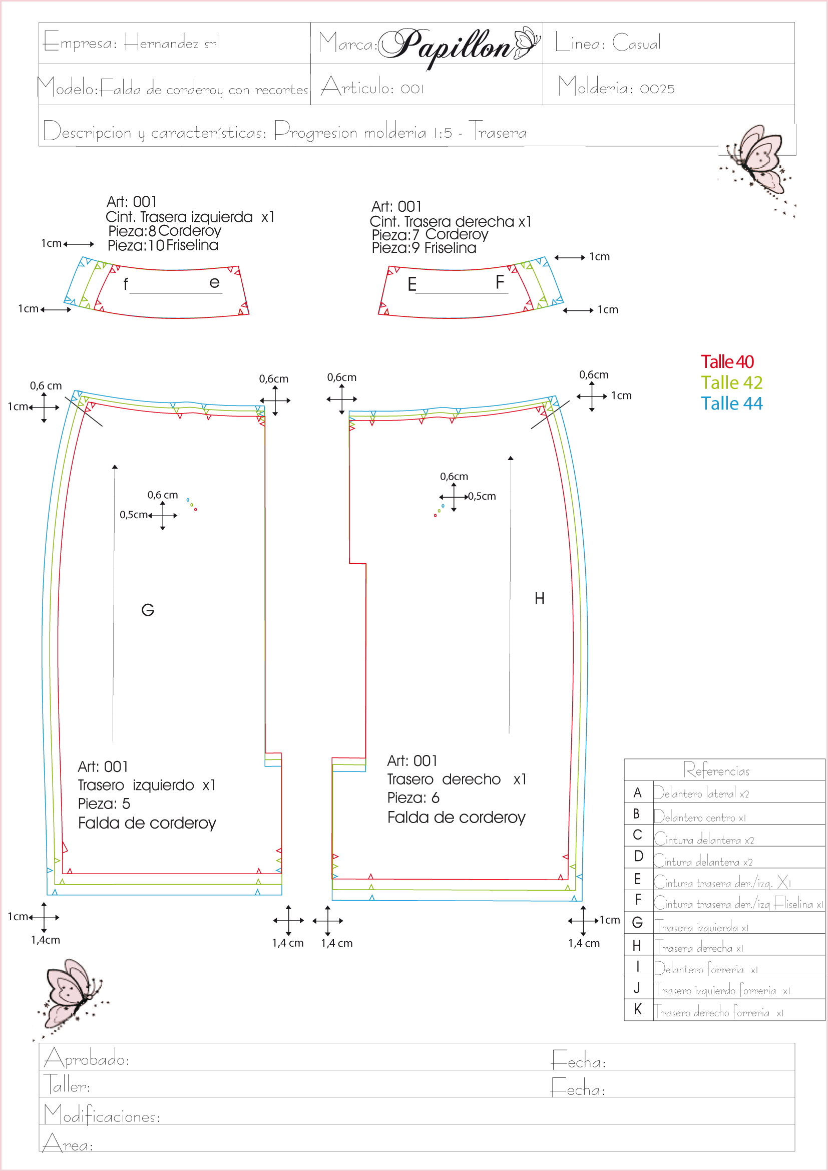 Las progresiones se realizan una vez terminada la moldería, cuando ya no queda ninguna modificación y los moldes son los finales.