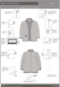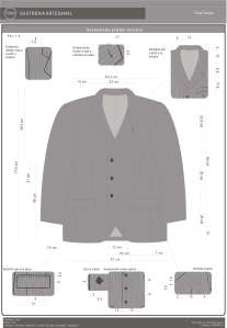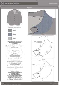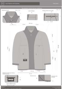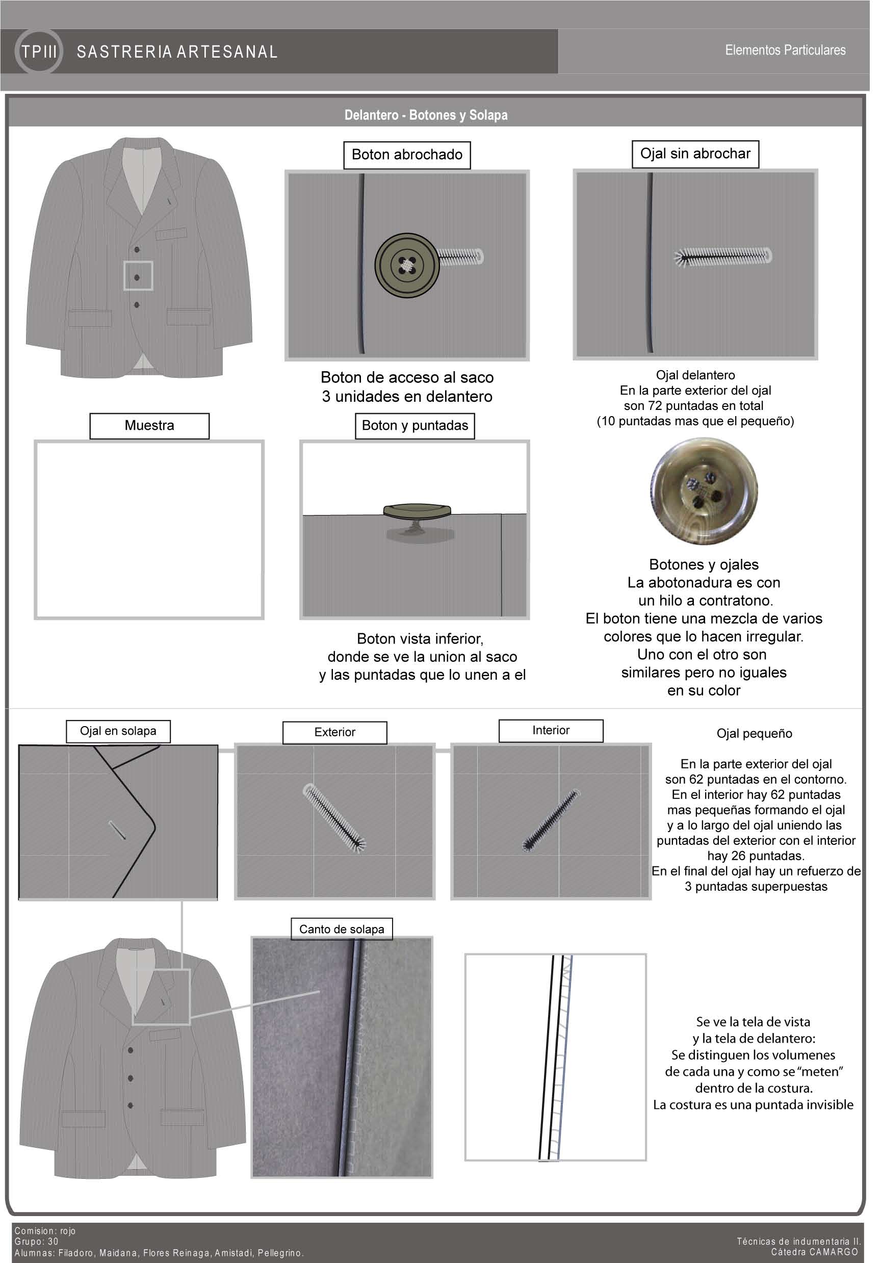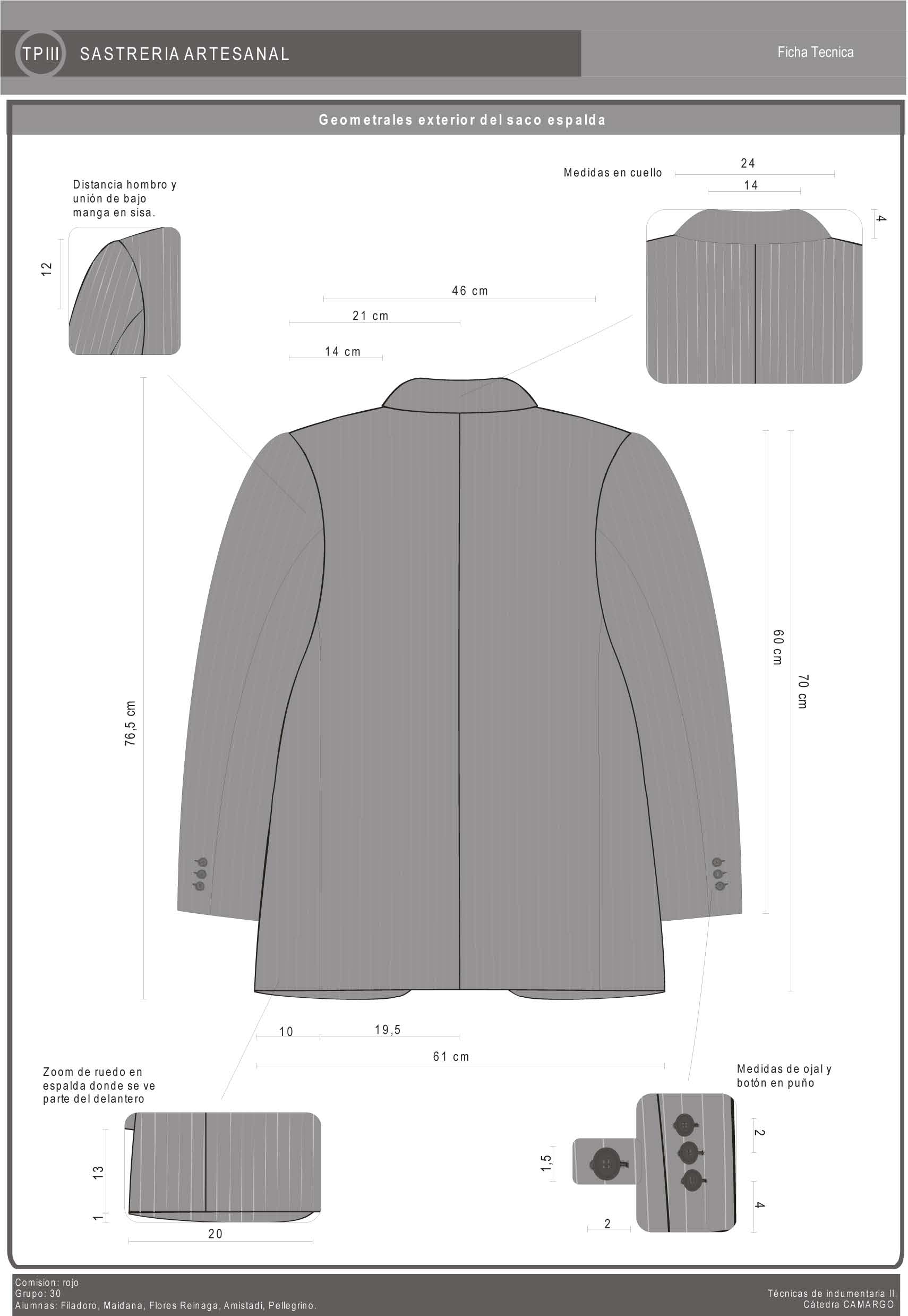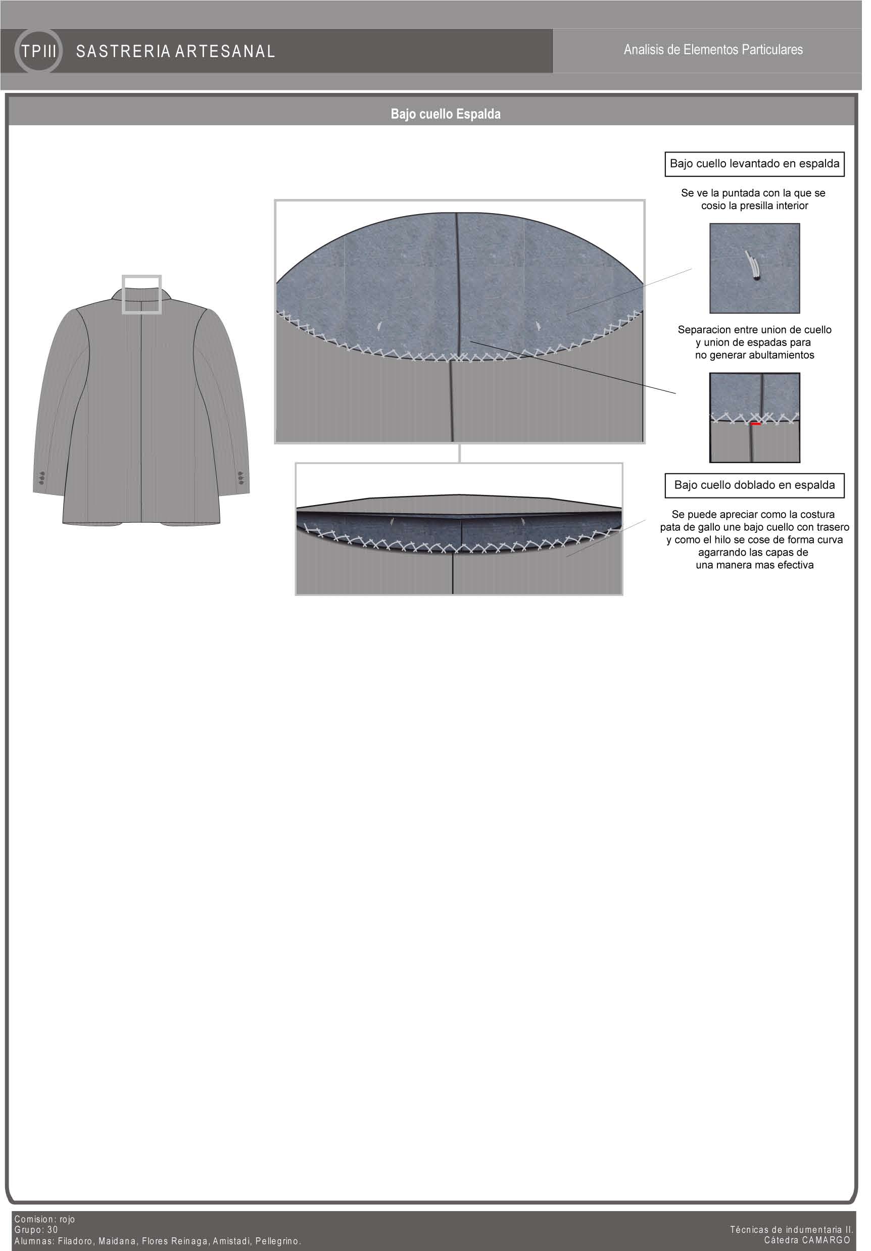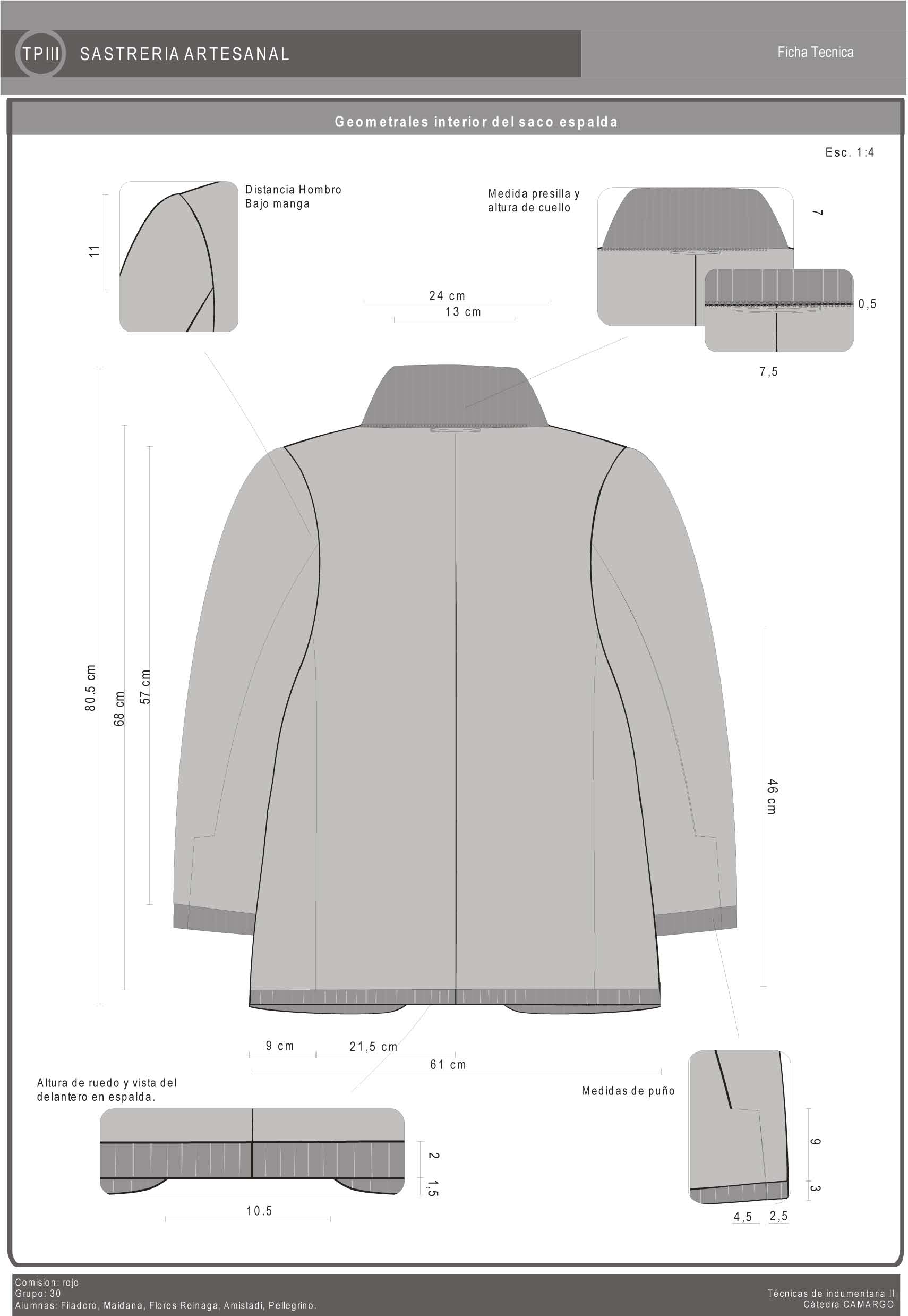 Geometrales a escala de las partes. botones, ojales, cuello, bajo cuello, diferenciación de textiles