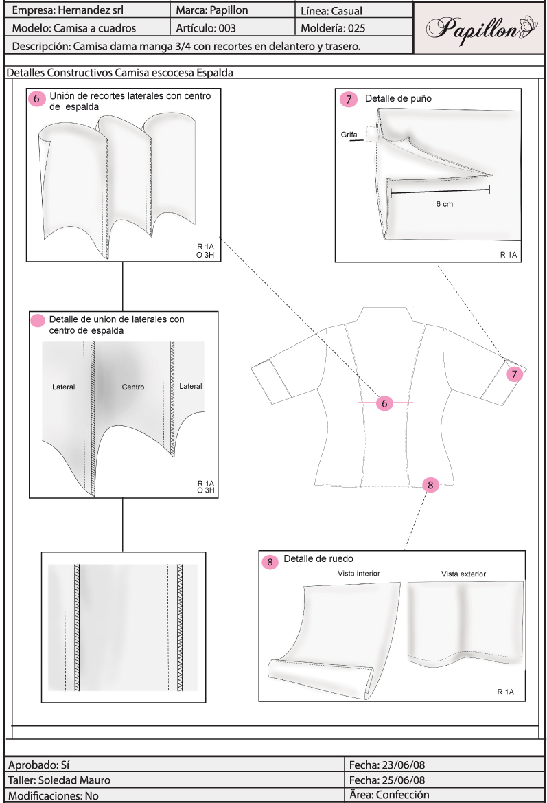 Geometrales y zooms de costuras y detalles.