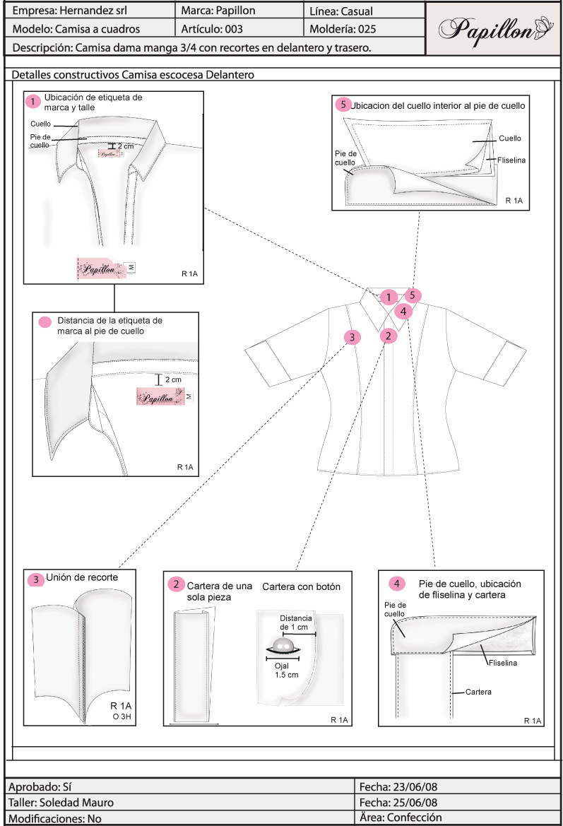 Detalles constructivos y zooms de costuras. Breves esquemas de armado de cada parte.