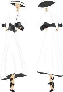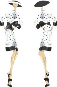 Con una estética refinada al estilo Dior, realizo estos figurines con detalles muy sutiles en el rostro, manos y pies. Realiza un trabajo muy delicado y suave de luces y sombras y utiliza una paleta monocromática que resalta la forma y la silueta.