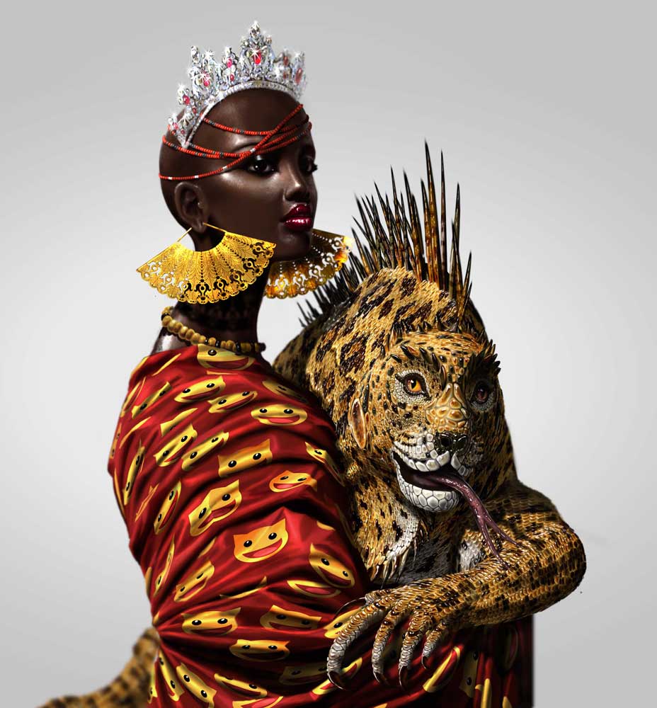 Sus imágenes son impactantes a través de la situación que se encuentra el retratado. Utiliza elementos fantásticos para mezclar personas con seres imaginarios. Rostros y miradas provocadoras, colores y luces misteriosas hacen de estos personajes, seres exóticos.