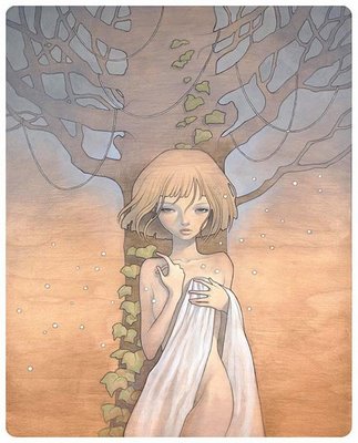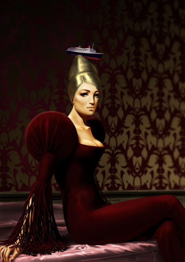 Las imágenes logradas por esta ilustradora poseen un clima y una temperatura muy cálida y sugerente, a partir de la inclusión del fondo, compuesto por maderas de diferentes tonalidades mantiene una estética romántica y sensual.