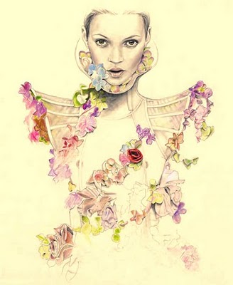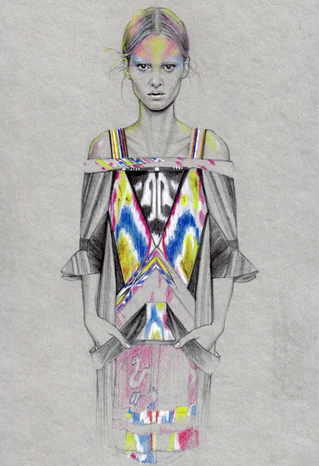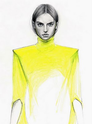 Niki también es una ilustradora muy actual y moderna y también trabaja a partir de hojas como soporte y utiliza el color en focos muy precisos del plano. Logra una imagen muy diferente a la anterior porque los colores flúor que utiliza son muy saturados, y contrastantes con el lápiz y la hoja.