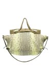 Clase 4. Cartera grande al hombro con boca volcada ocultando el cierre, 2 bolsillos con cierre en tapa, manijas con soga, fuelle con forma. Mucha capacidad
