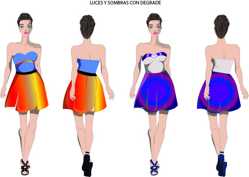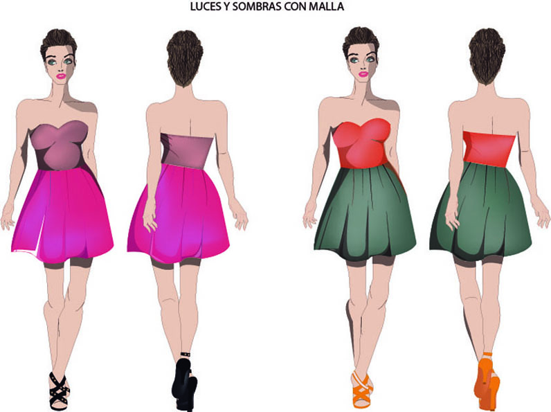Realización de una muestra de procesos y acabados diversos en un figurín. Tratamiento de las luces y sombras en cada caso.