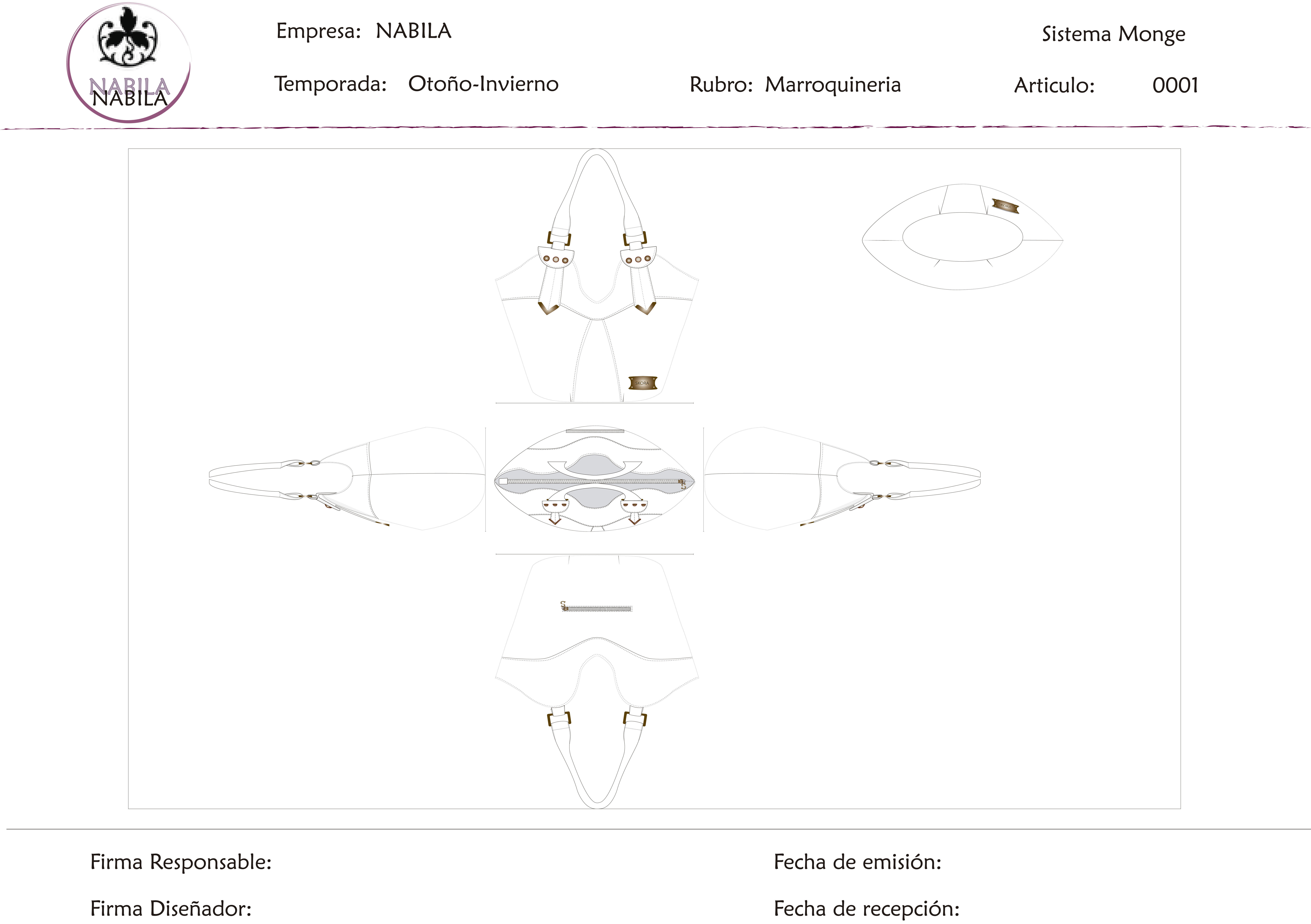 Diseño de carteras. Realización del desglose técnico de un bolso de marroquinería.