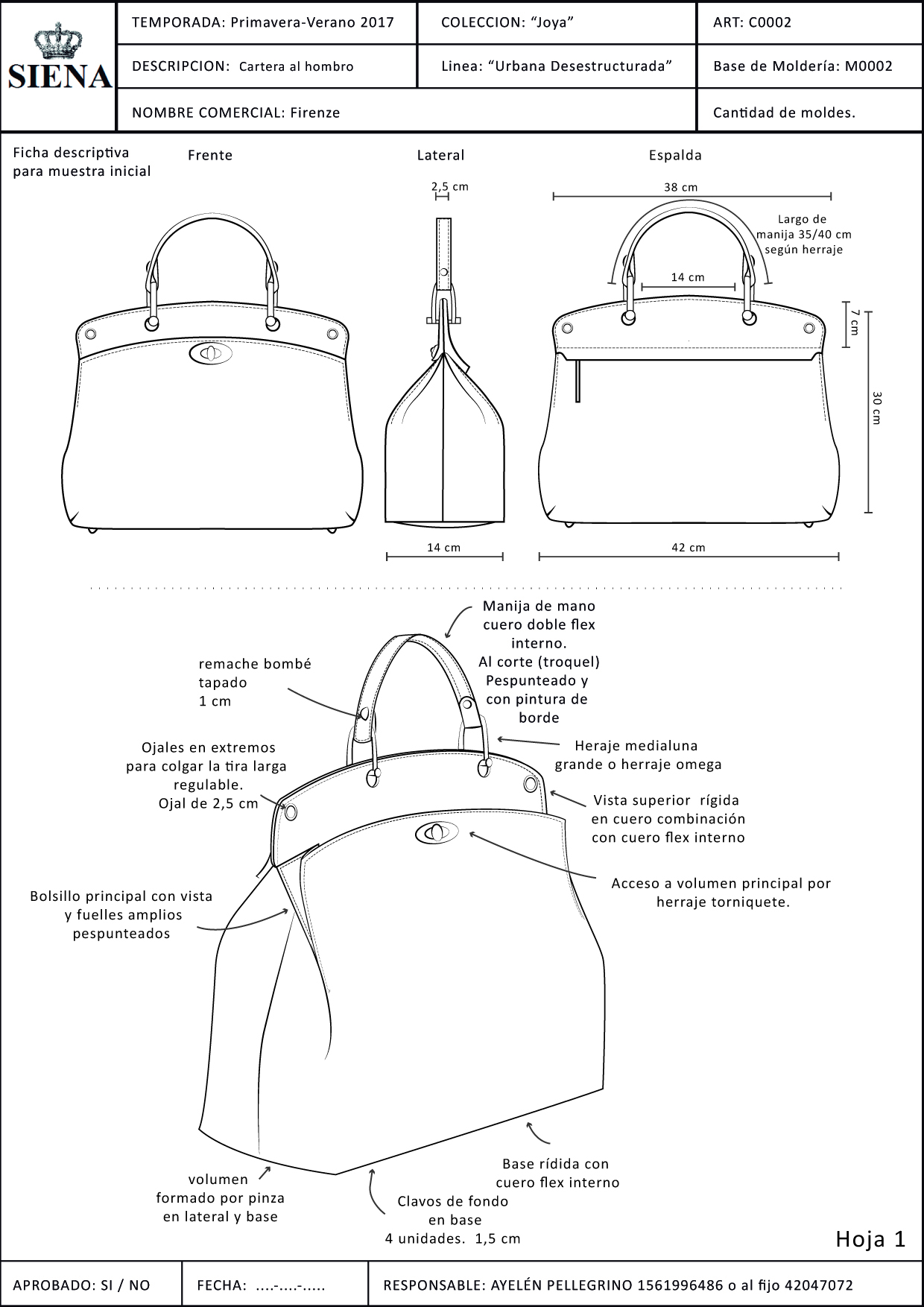 Todas las fichas técnicas son herramientas de trabajo y documentos esenciales para el desarrollo óptimo de cualquier producto. Es el lugar donde el boceto, se perfecciona, el diseño cobra nuevos sentidos y se profundiza en la comunicación de la marca. El ida y vuelta entre diseñador, modelista y muestrista mejora la calidad de los productos y del proceso. Pensar que la función de las fichas técnicas es describir los procesos técnicos es un error y elimina los detalles en el diseño, se pierde un gran eje del diseño como es el diseño de herrajes, forrería, interiores, refuerzos, sistemas.