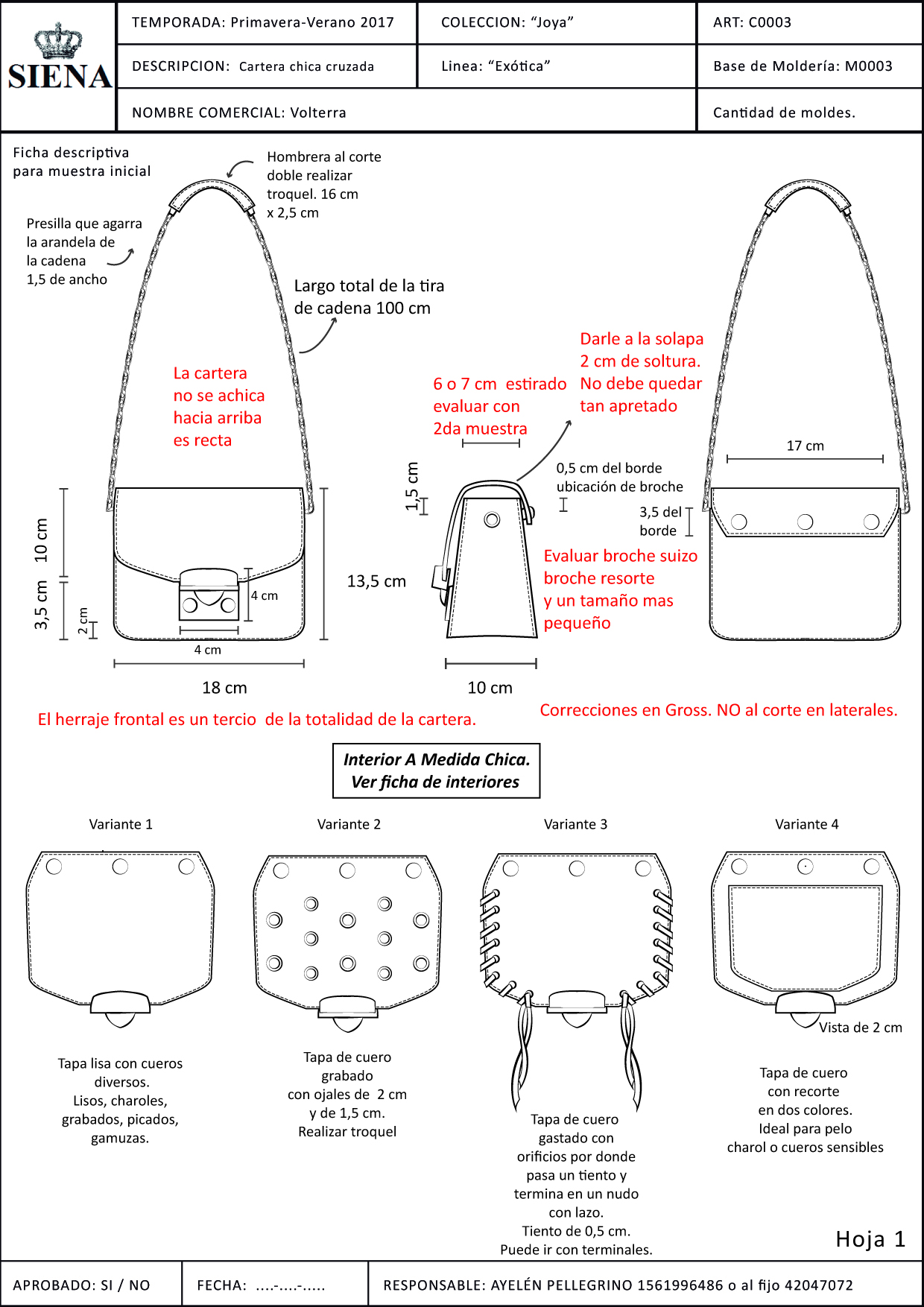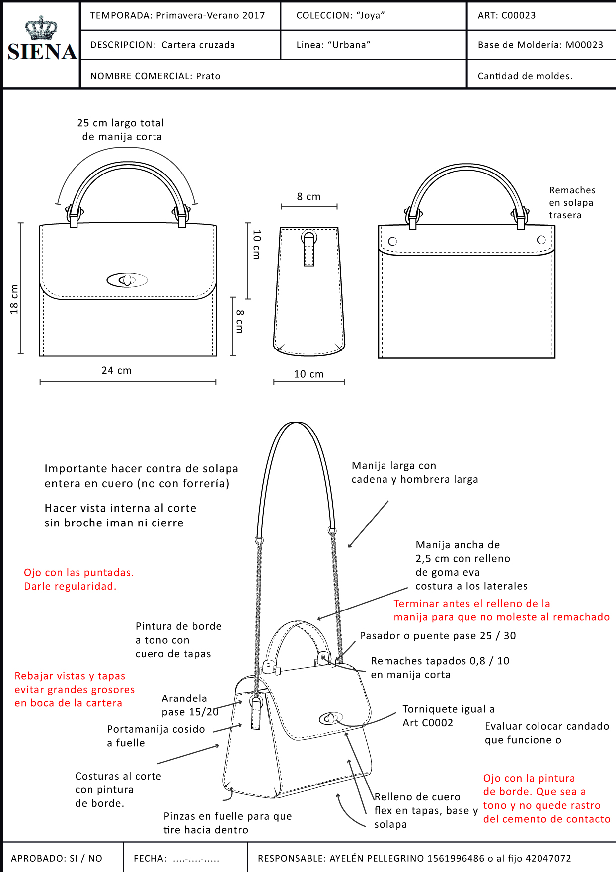 En marroquinería, es fundamental contar con una ficha previa a la muestra y moldería que realizará el encargado o muestrista, donde daremos a conocer cuáles son los aspectos fundamentales, los detalles característicos, las medidas generales y concretas de cada detalle. Cuando la empresa es pequeña y no cuenta con el capital para desarrollar tantas fichas técnicas, es posible realizar una ficha que englobe varias necesidades.